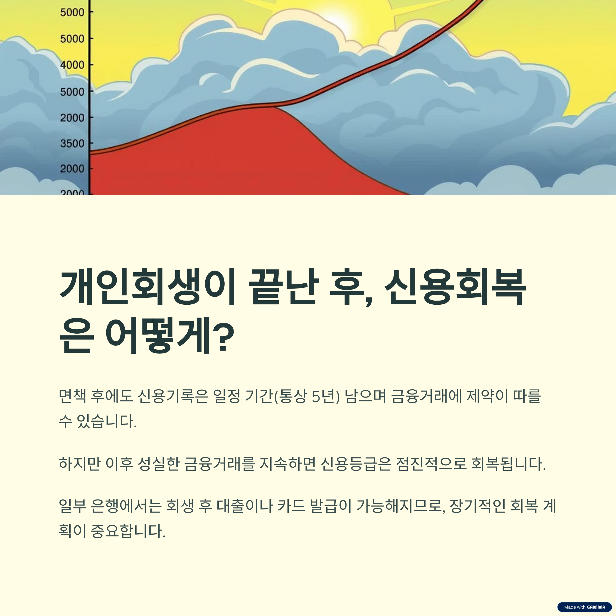 또한 일부 은행에서는 회생 이후 일정 기간이 지나면 대출이나 카드 발급이 다시 가능해지는 경우도 있으므로, 장기적인 회복 계획이 중요합니다.