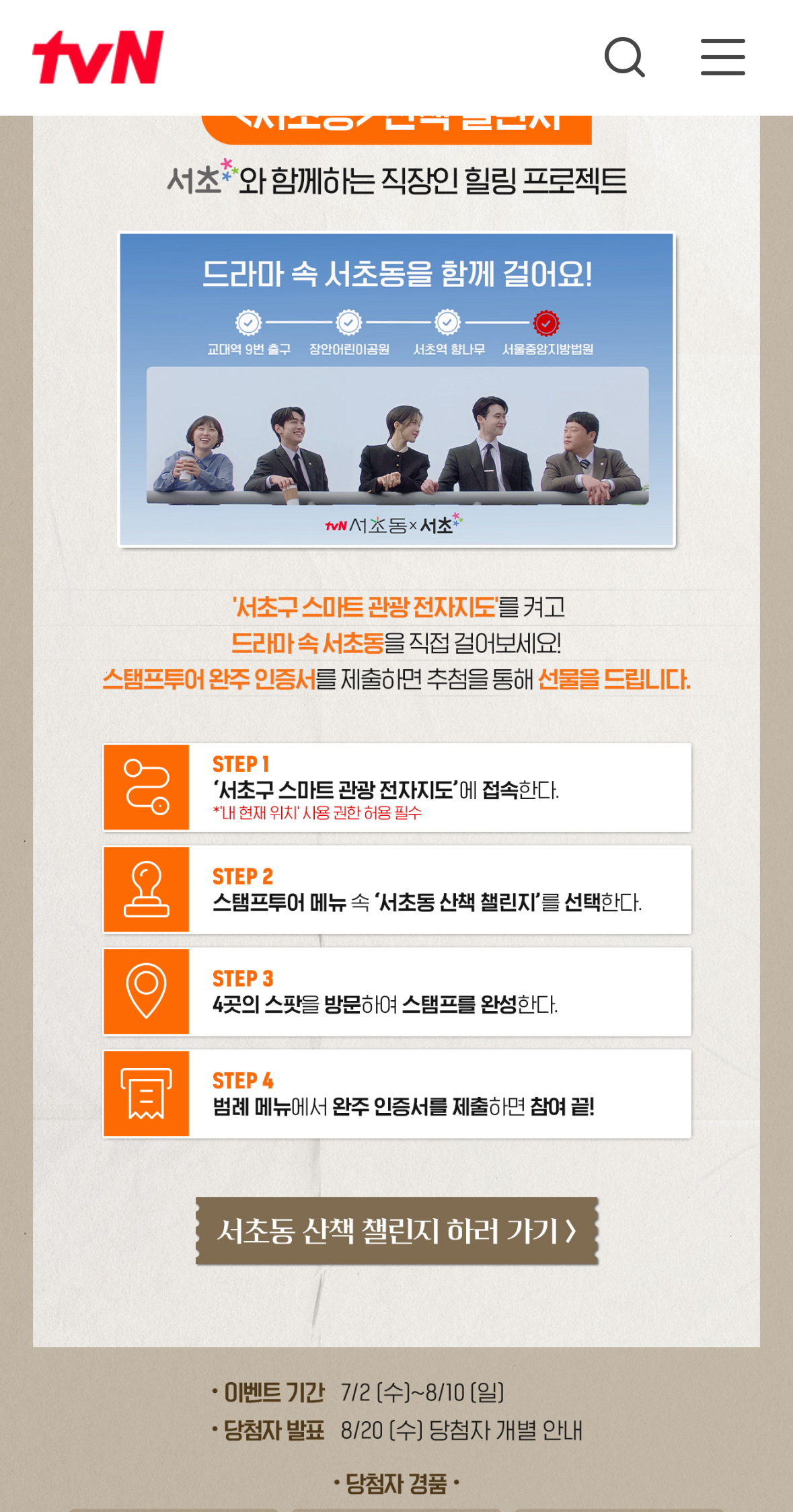 서초구청과 tvN이 공동 기획한 지역 참여형 걷기 이벤트입니다.