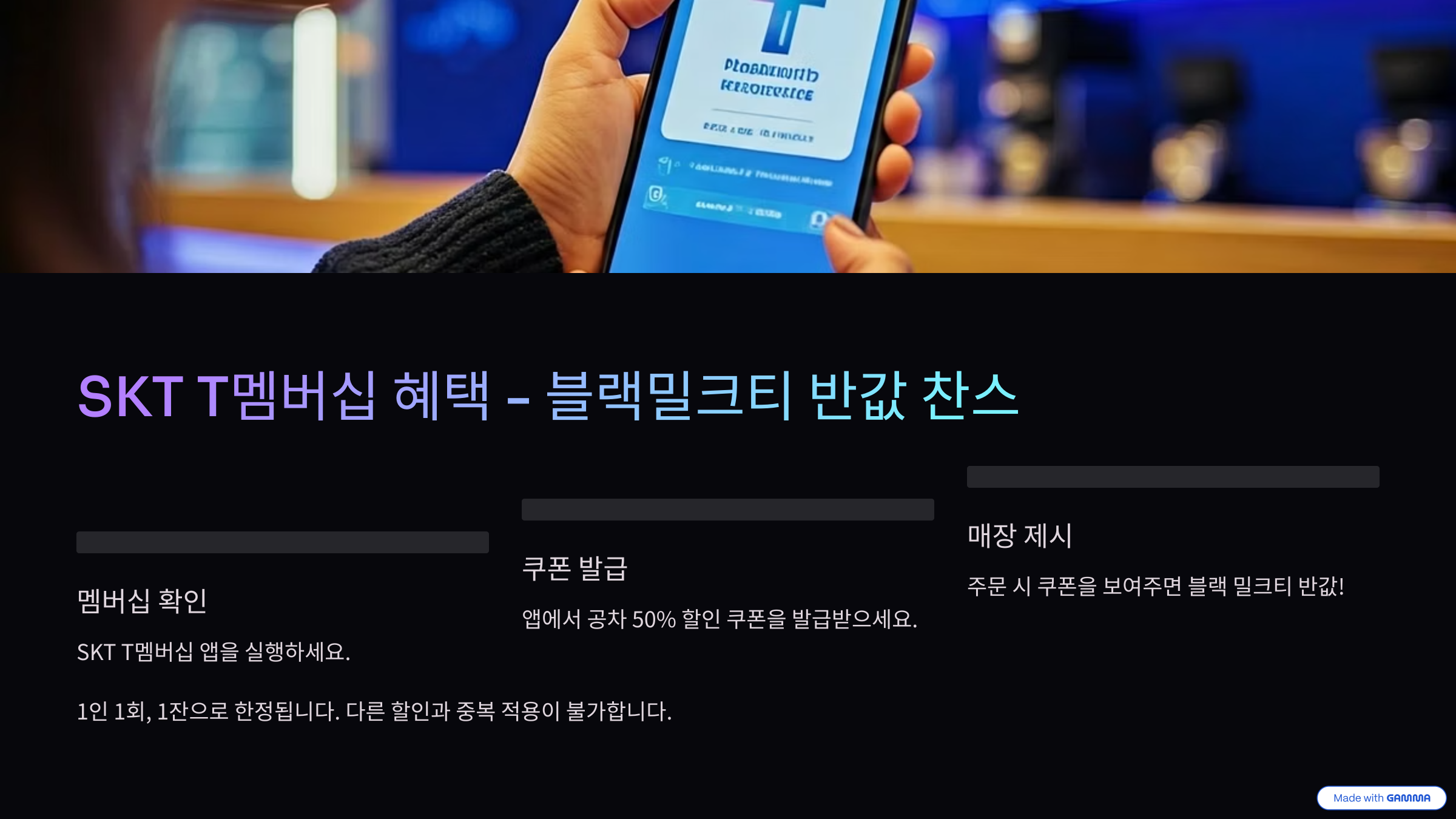 SKT T멤버십 혜택 - 블랙밀크티 반값 찬스