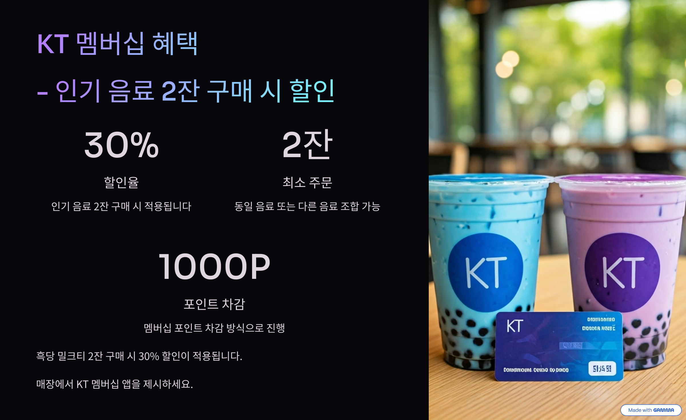 KT 멤버십 혜택 - 인기 음료 2잔 구매 시 할인