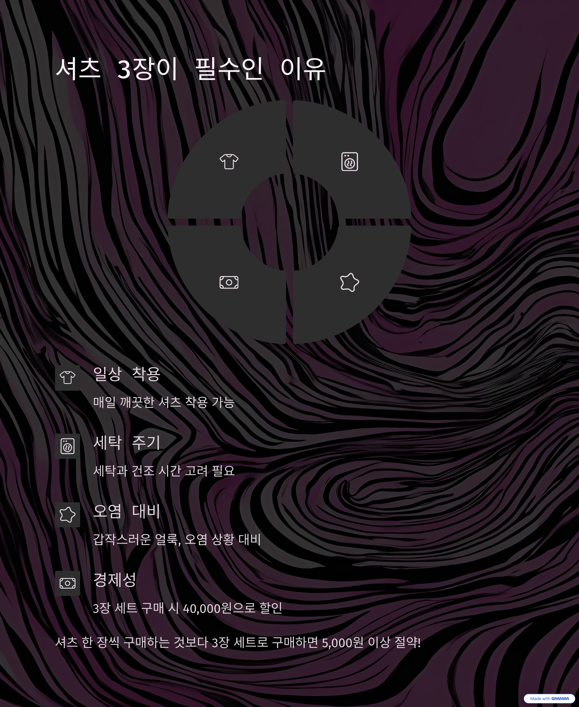 "셔츠는 3장 이상 구입해야 경제적입니다."