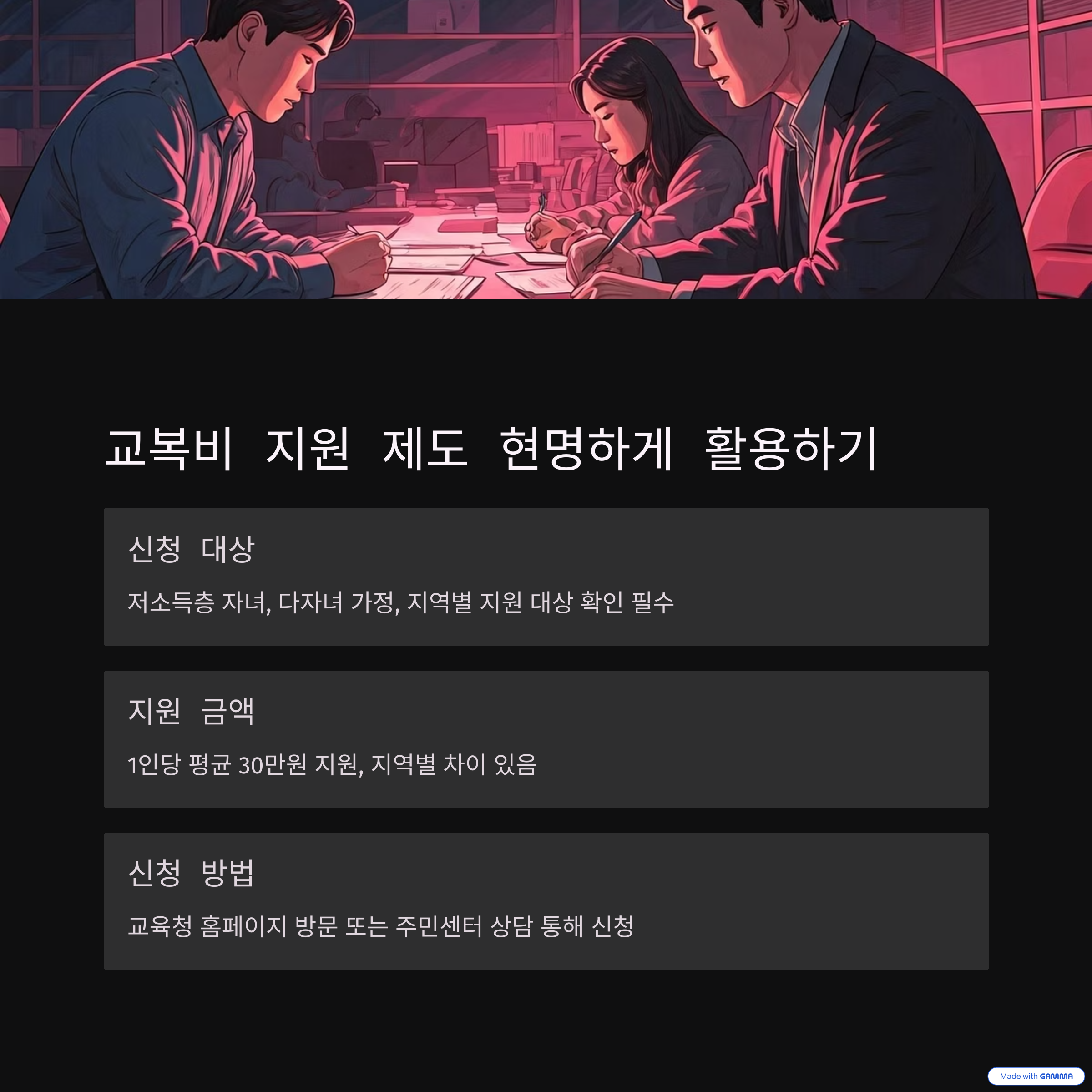 "정부와 지자체의 교복비 지원 제도는 반드시 활용해야 할 필수 전략입니다."
