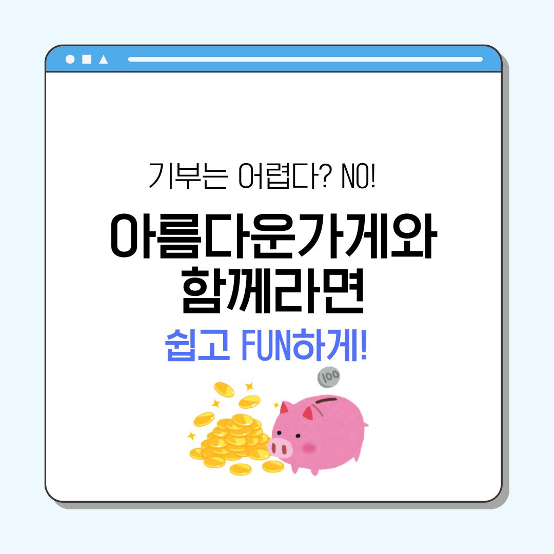 세상에 기부가 어렵다는 편견을 깨고, 쉽고 FUN 한 나눔의 첫걸음을 아름다운 가게와 함께 시작해 보세요. 저도 이번 주말엔 기부 상자 하나 만들어 볼 생각이에요. 여러분도 같이 해보실래요?