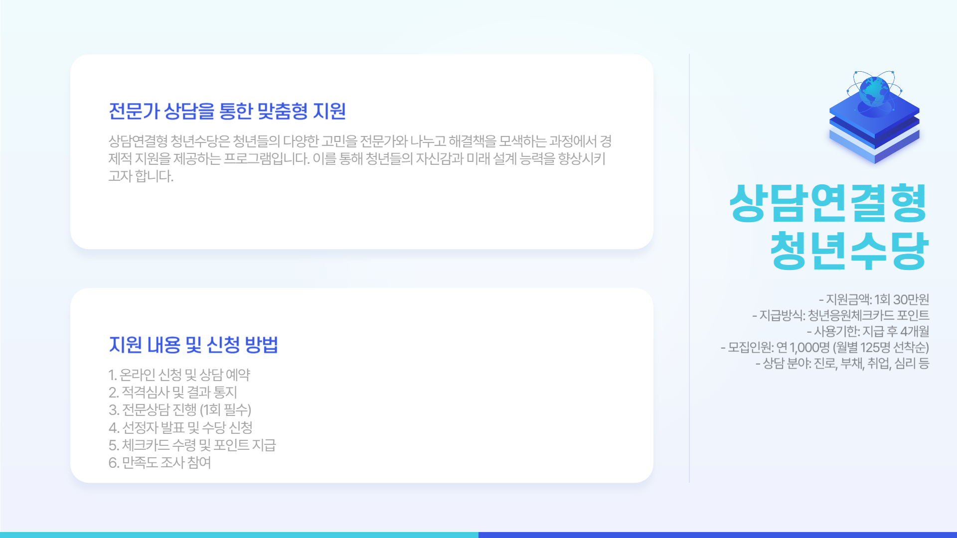 | 모집인원 | 연 1,000명 (월별 125명 선착순) |
