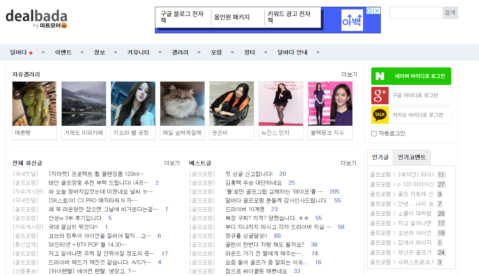 딜바다는 '골프', '여행', '캠핑' 등 주제별 포럼이 활성화되어 있습니다