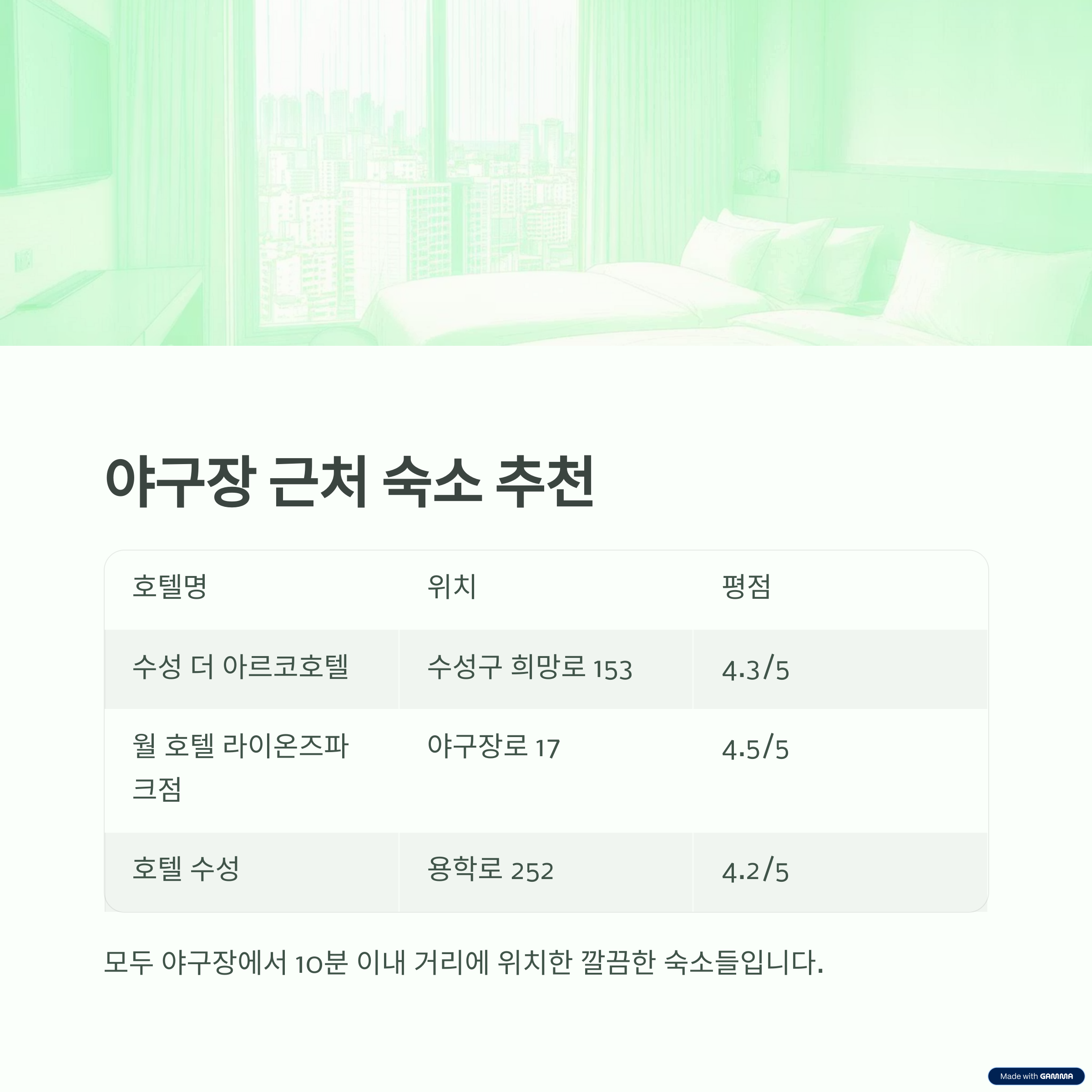 하루 종일 야구를 즐기고 나면 피곤함이 몰려오죠. 그래서 숙소 선택은 매우 중요해요.