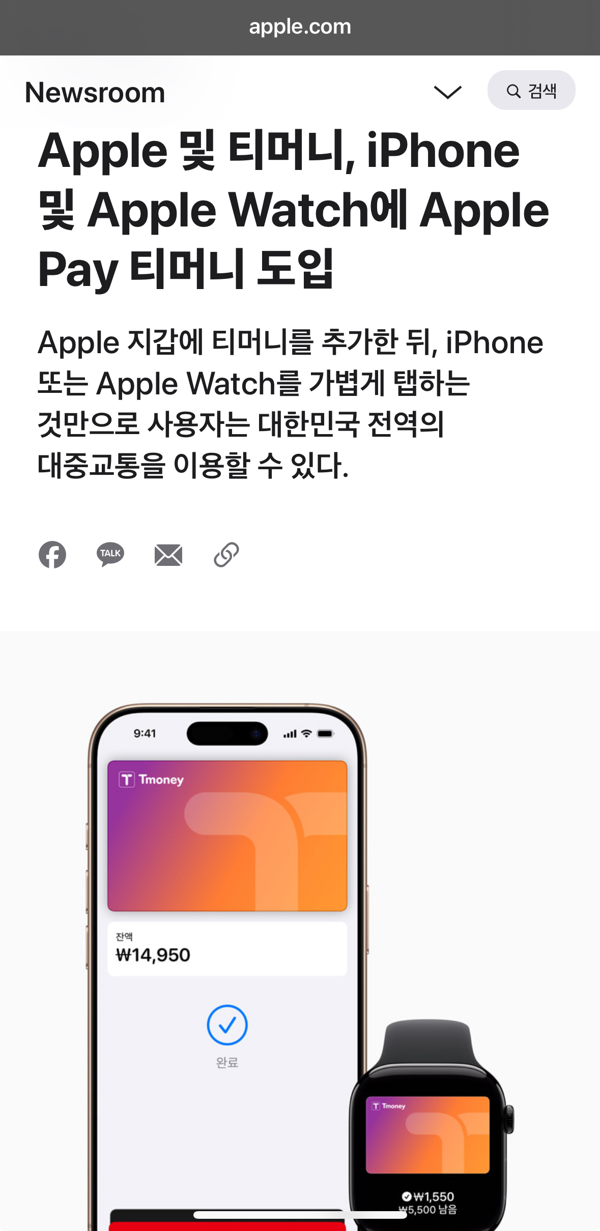 2025년 7월 22일부터 아이폰과 애플워치에서도 티머니 교통카드를 사용할 수 있게 되었습니다.