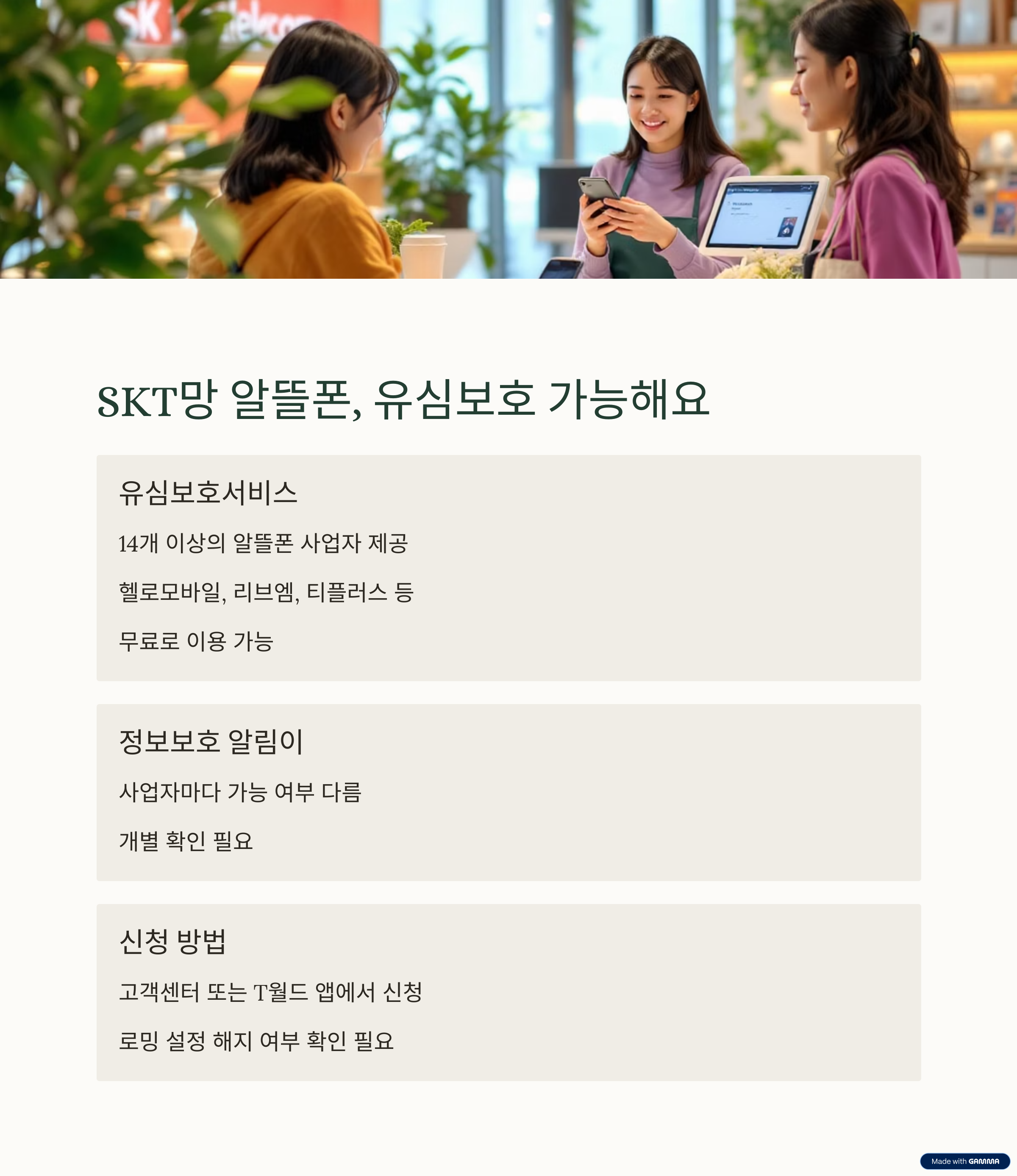 SKT망을 사용하는 알뜰폰 이용자는 유심보호서비스 가입이 가능합니다.