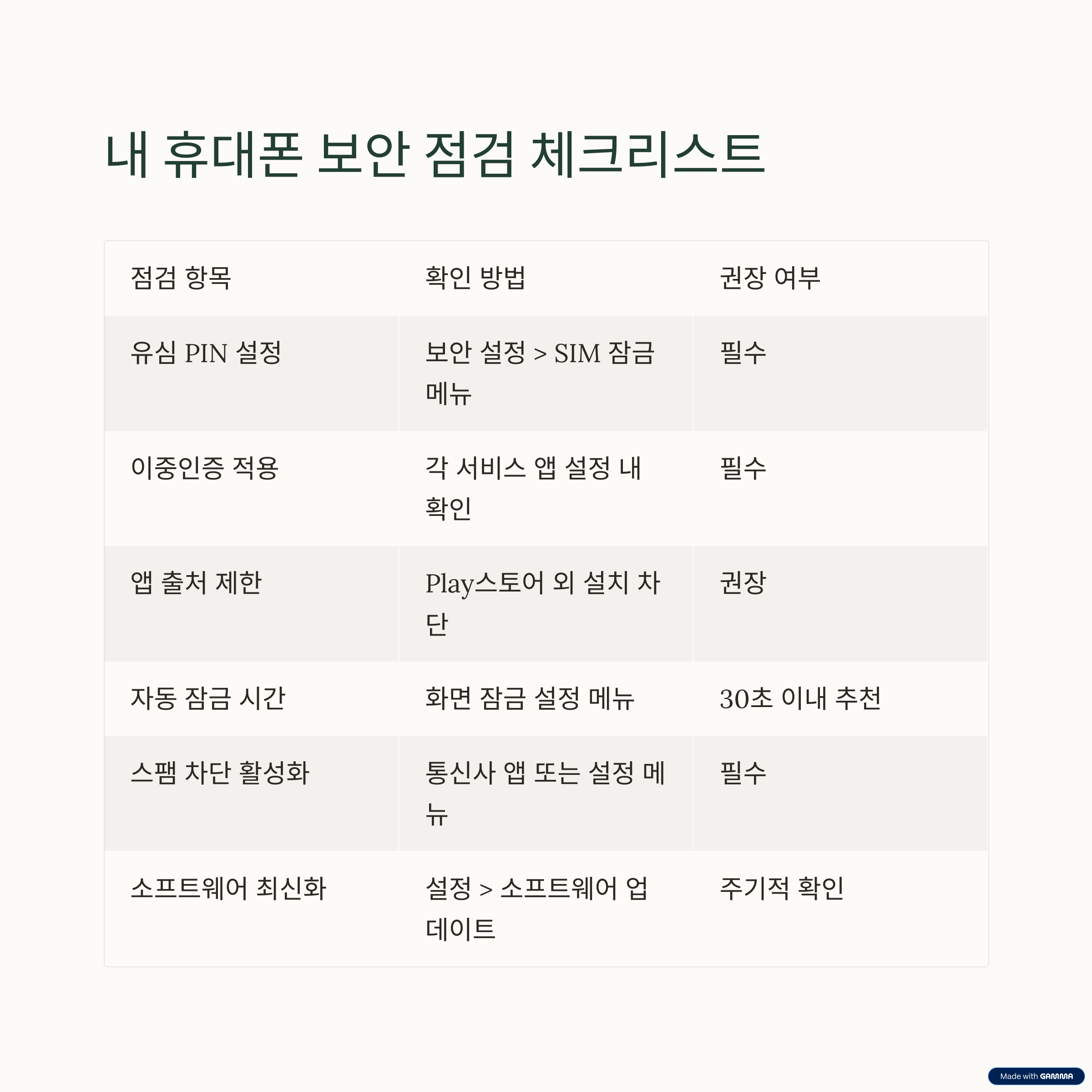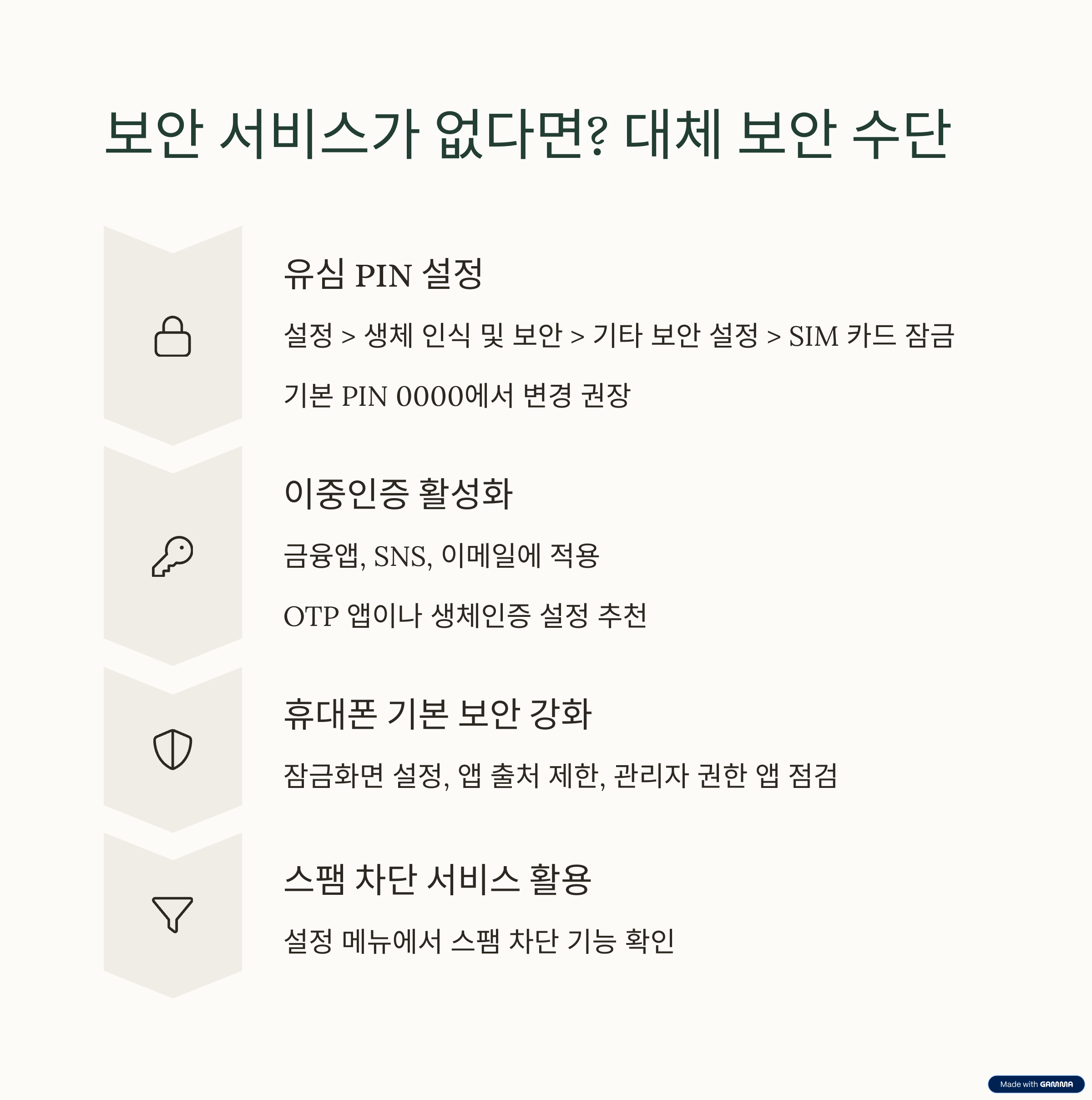 문자 인증 외에 OTP 앱이나 생체인증 설정이 추천됩니다. - 휴대폰 기본 보안 강화