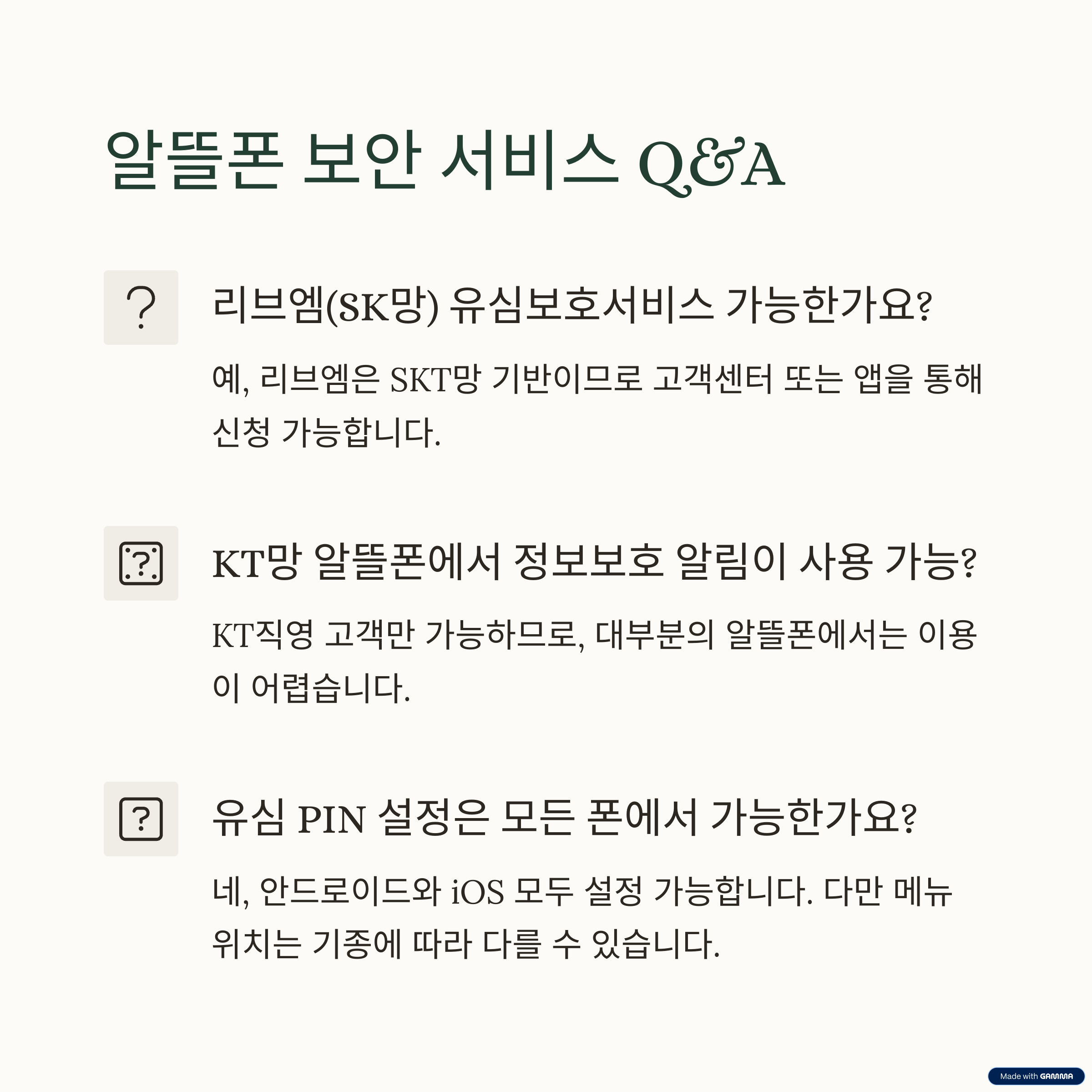 - 유심보호서비스: 일부 알뜰폰에서 가능