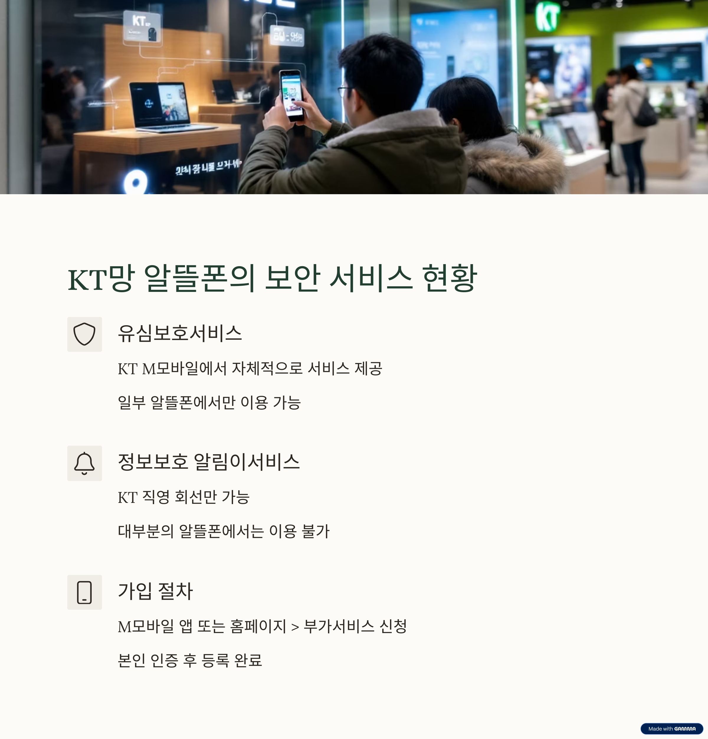 KT망 알뜰폰의 정보보호 알림이 가능 여부