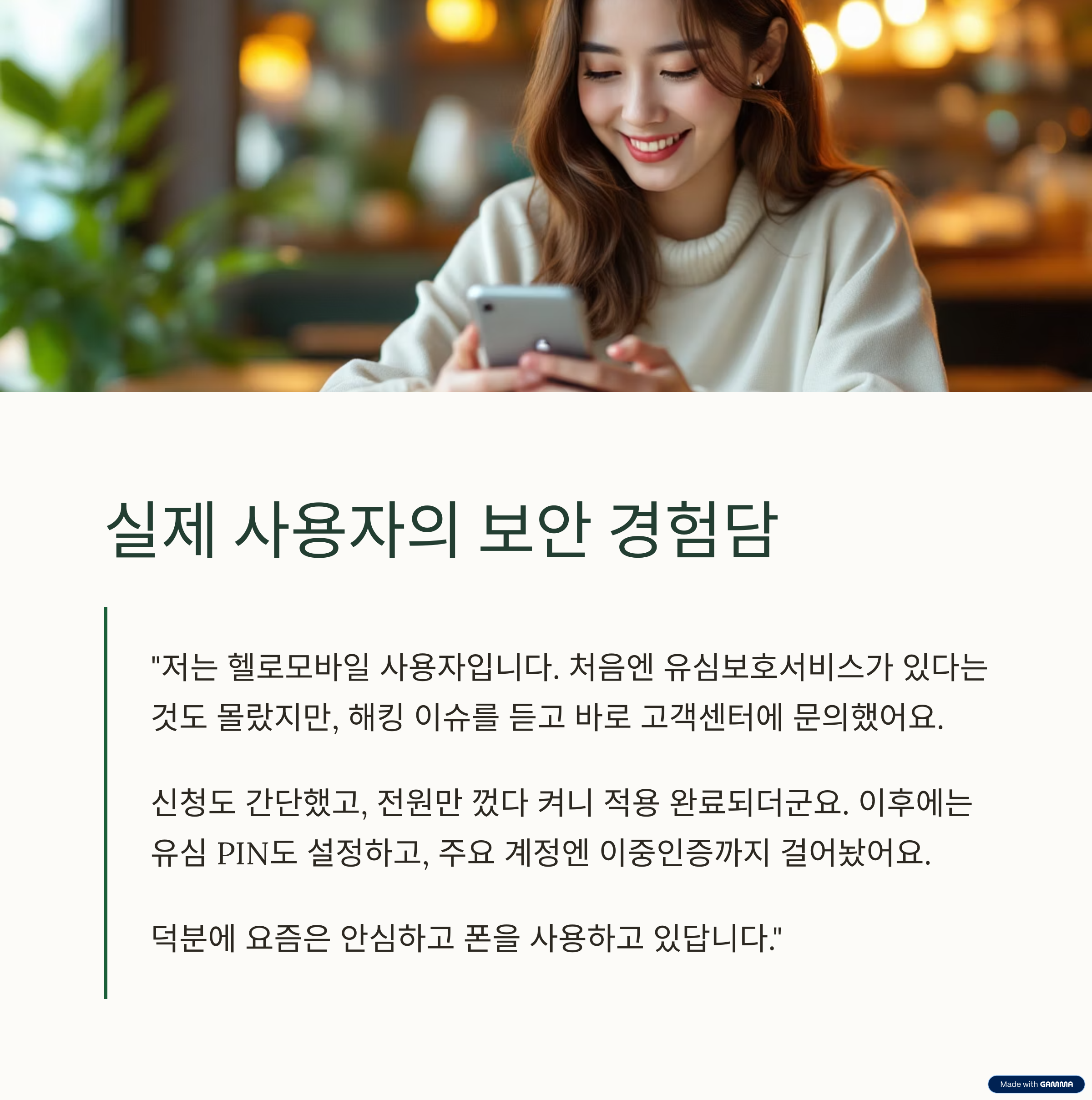 처음엔 유심보호서비스가 있다는 것도 몰랐지만, 해킹 이슈를 듣고 바로 고객센터에 문의했어요.