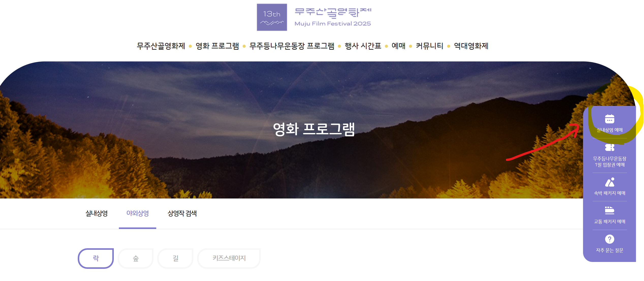 무주산골영화제 실내상영 바로 예약가능합니다. ↓↓