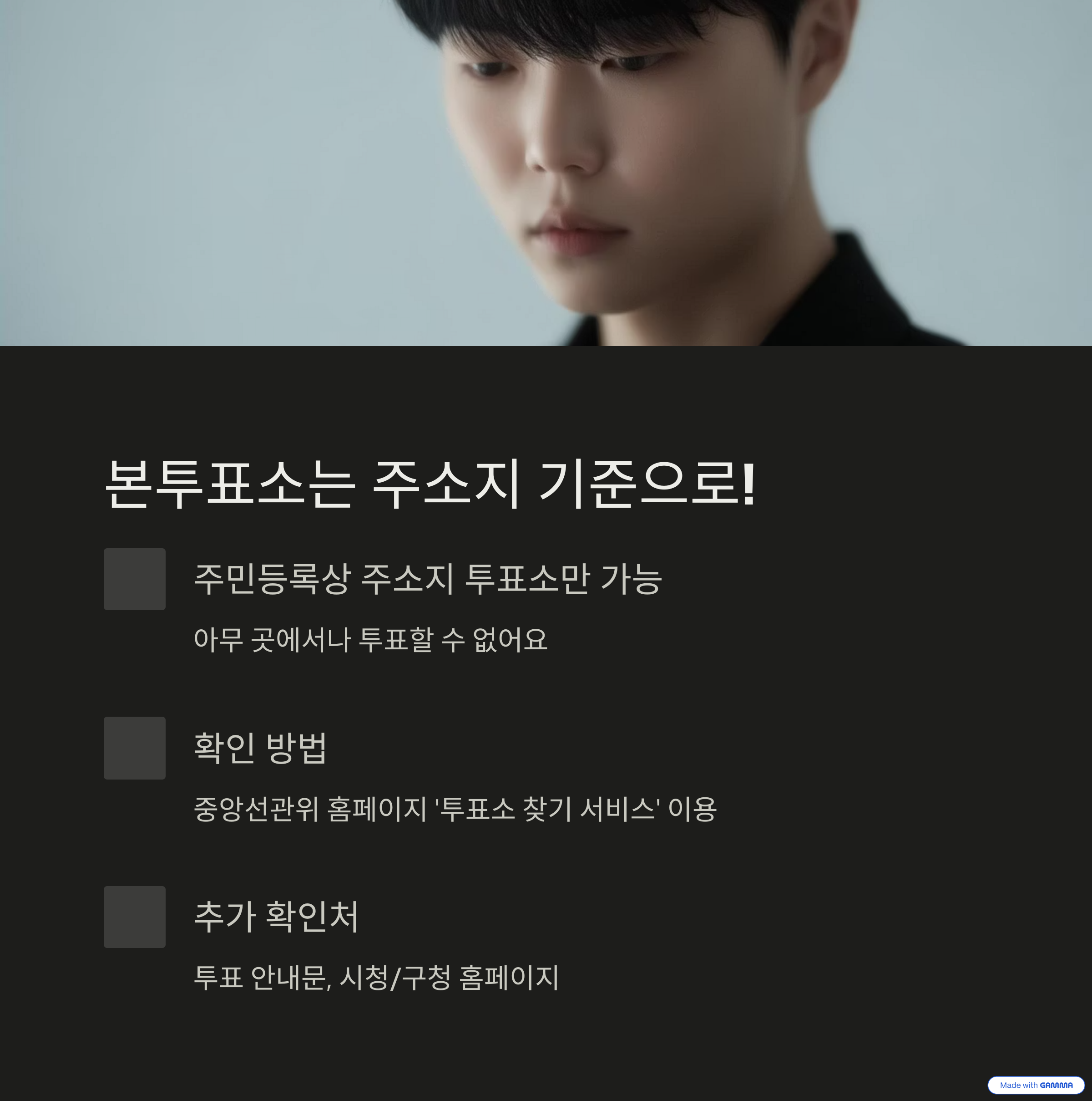 - 사전투표와 본투표 장소가 다를 수 있으니 사전 확인 필요