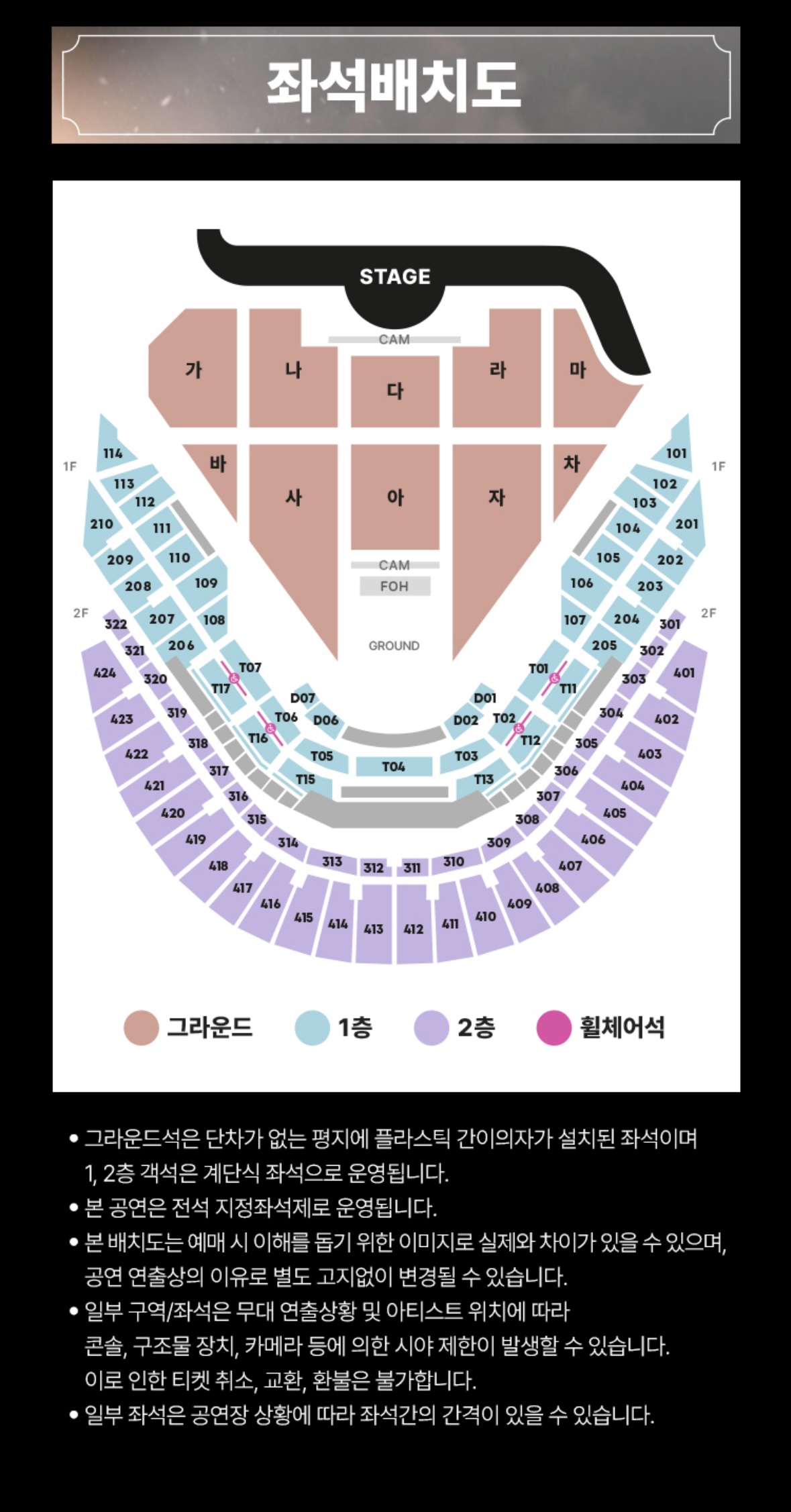 좌석은 별도의 지정이 아닌 현장 배정 또는 티켓사이트 공지에 따라 정해질 수 있습니다.