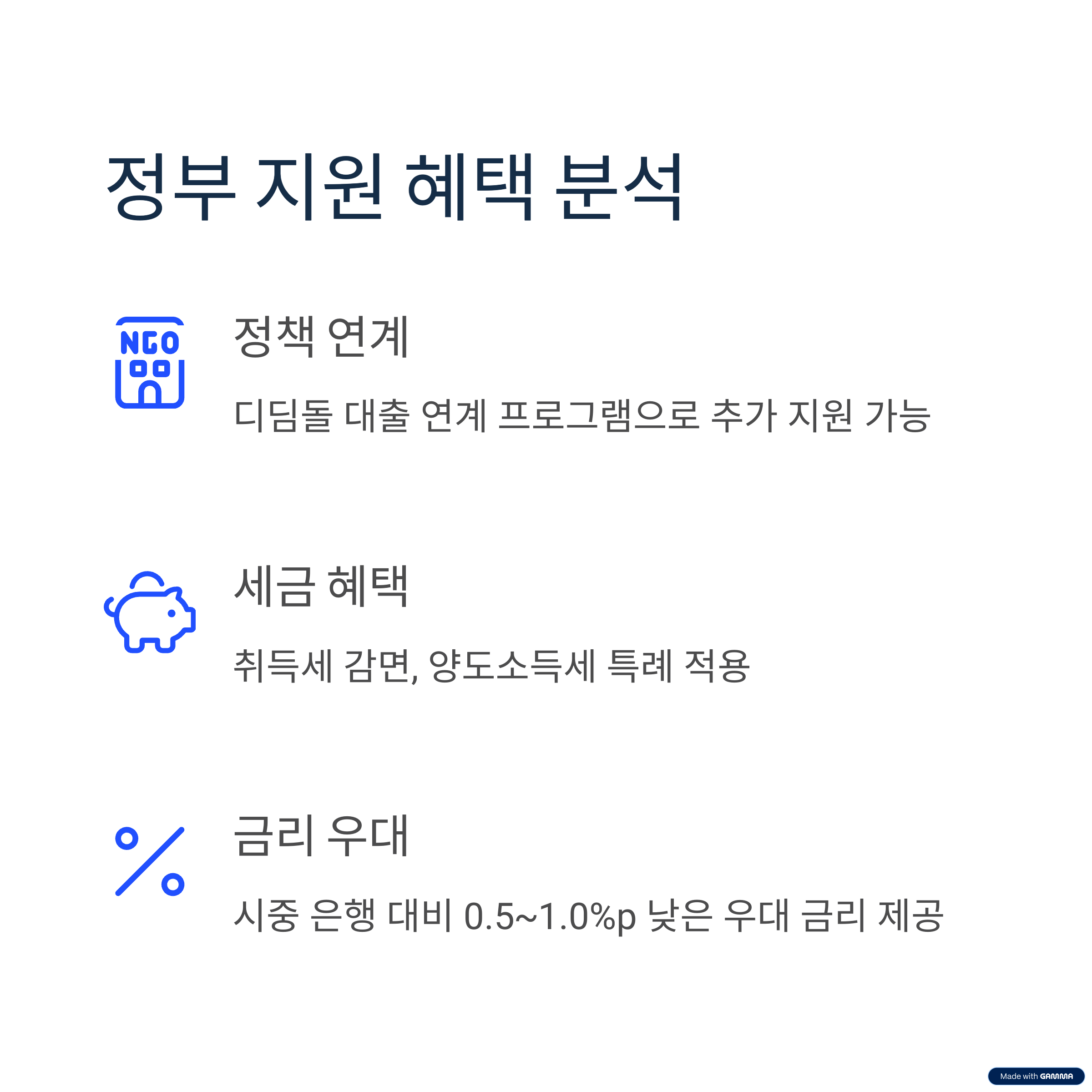 정부는 세제 혜택, 대출 우대, 취득세 감면 등 다양한 혜택을 병행하여