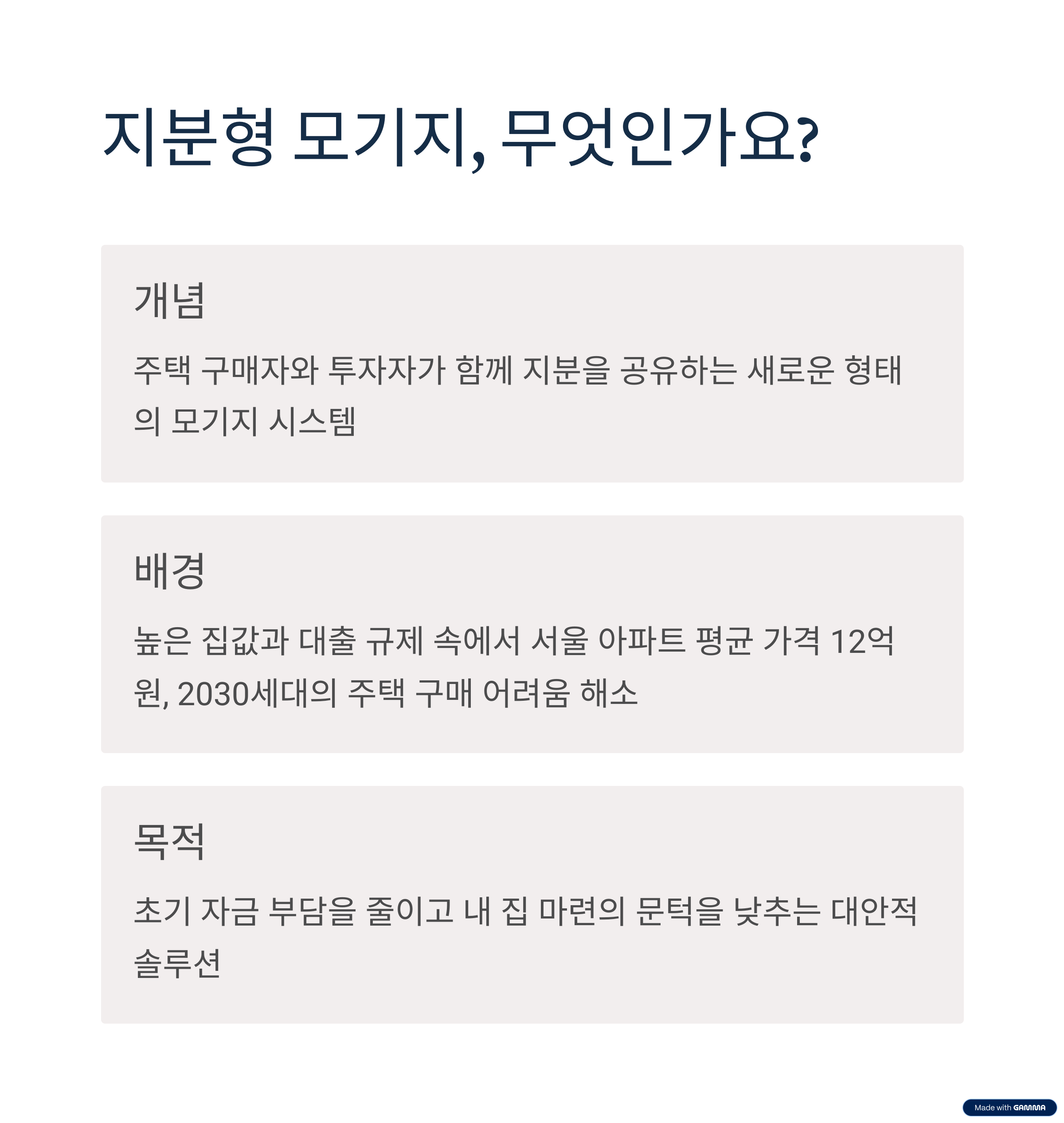 "처음부터 100% 소유가 아닌, 함께 나누는 구조"입니다.