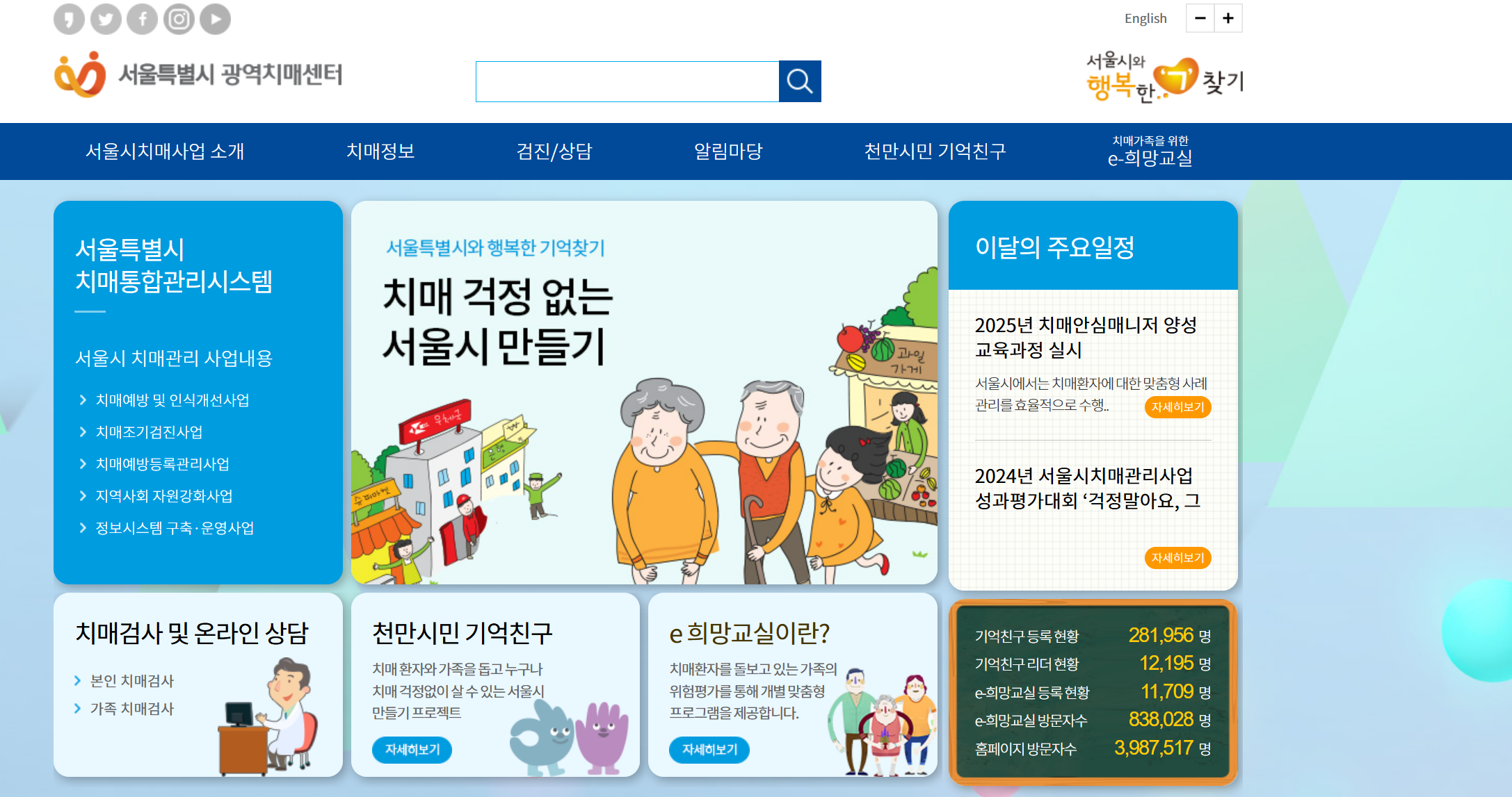 치매 조기검진, 인지 강화 프로그램, 가족 상담 및 돌봄 서비스 등 다양한 서비스를 제공합니다.