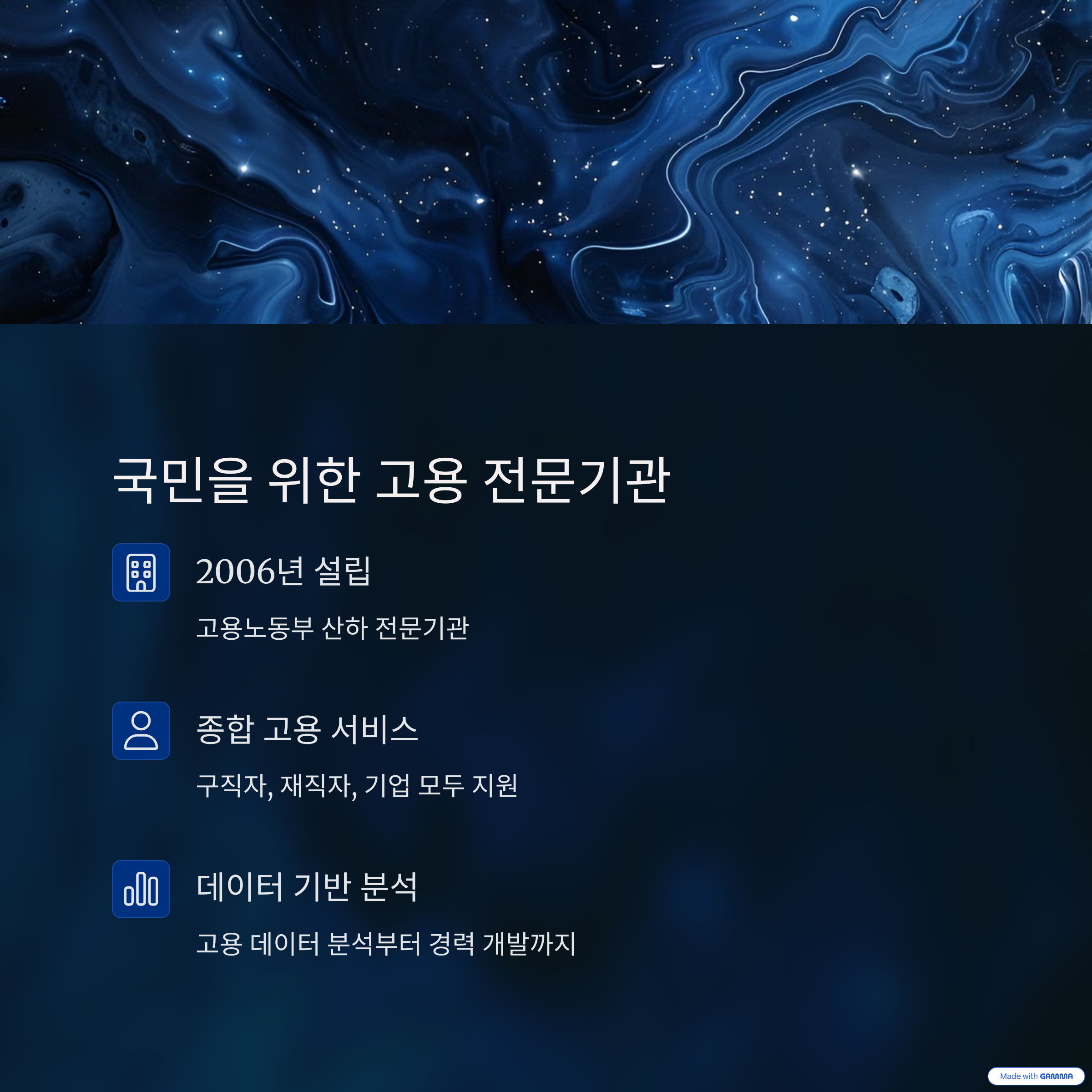 단순한 일자리 소개가 아닌, 고용 데이터 분석, 진로 지도, 경력 개발까지 다각도로 지원하는 점이 특징입니다.