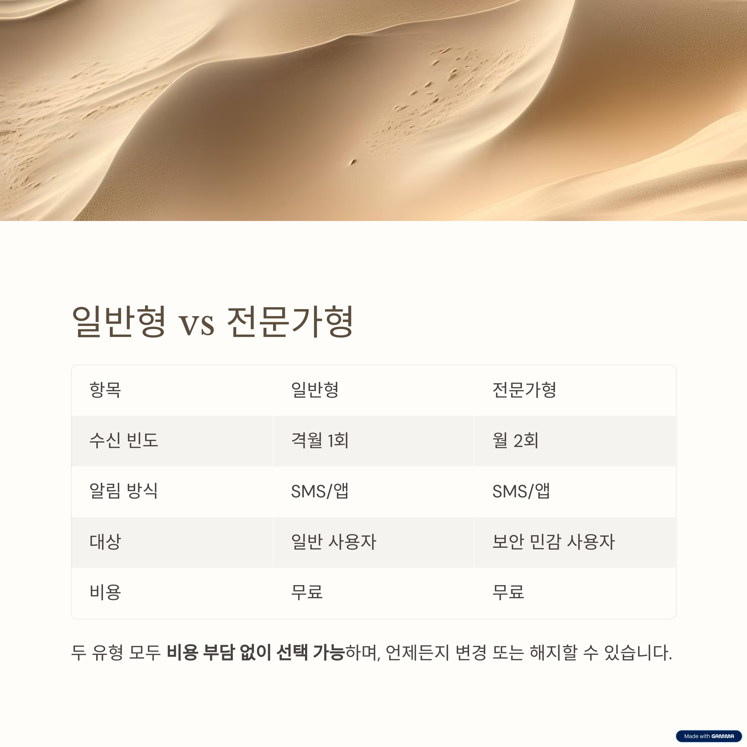 두 유형 모두 비용 부담 없이 선택 가능하며, 신청 후 언제든지 변경 또는 해지가 가능합니다.