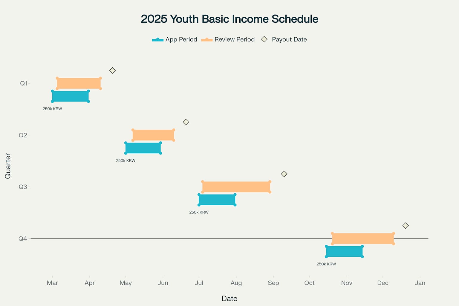 2025년 신청 일정은 분기별로 총 4회 진행되며, 기한 내 미신청 시 소급신청도 가능합니다.