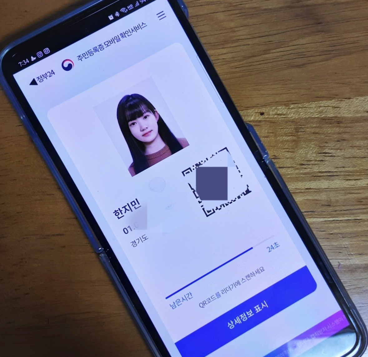 정부24 주민등록증 약 30초 상세정보 확인
