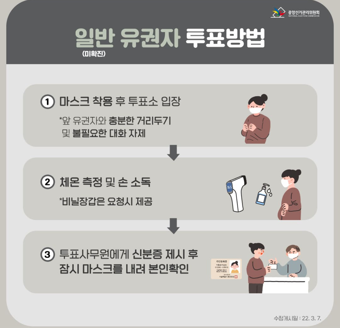 투표소에 도착하면 아래 절차를 따르세요