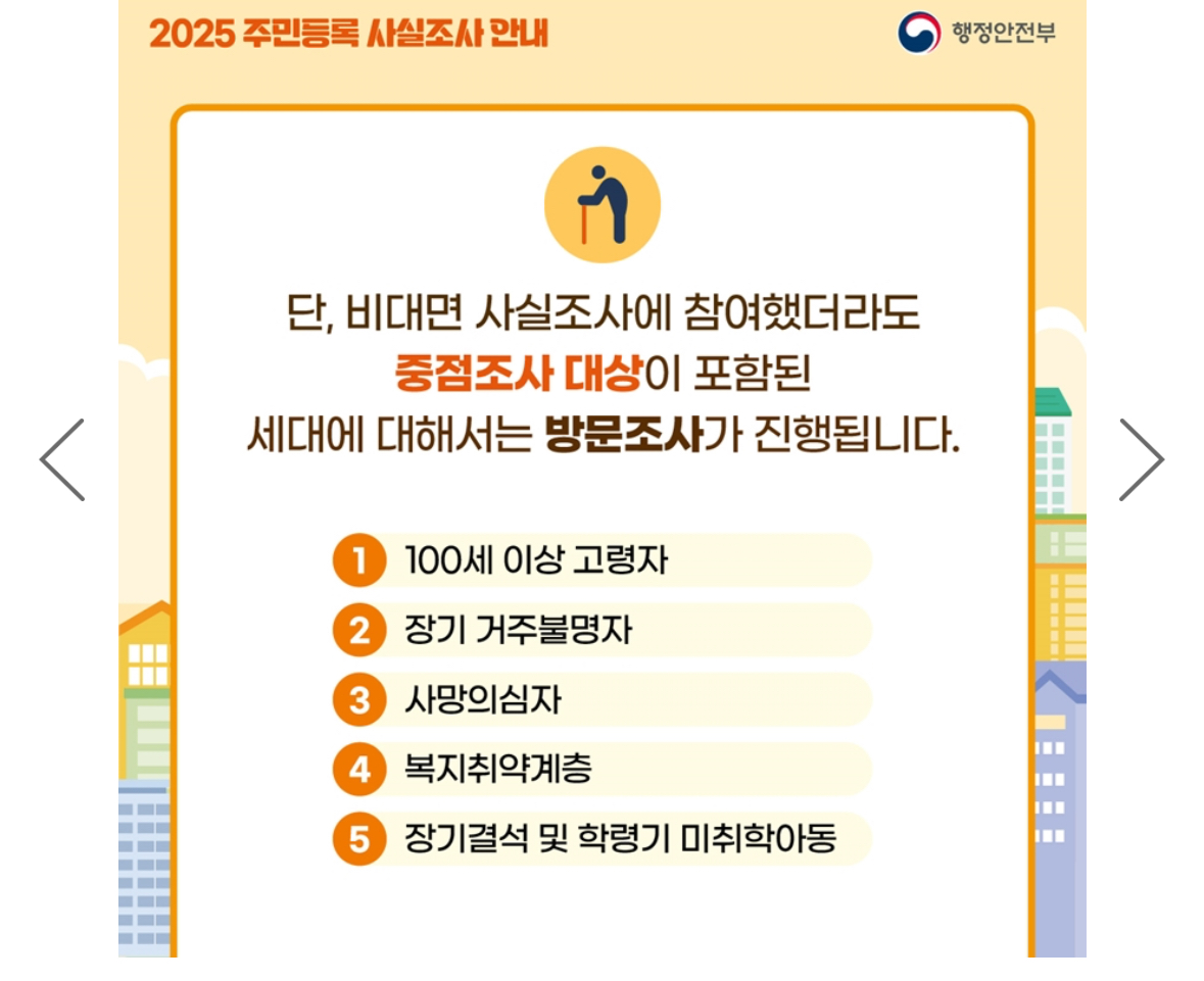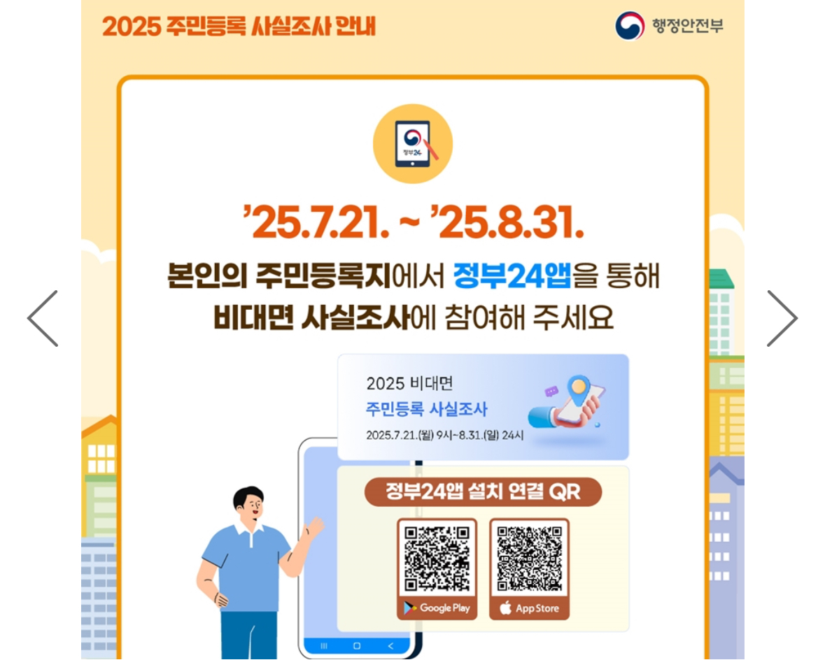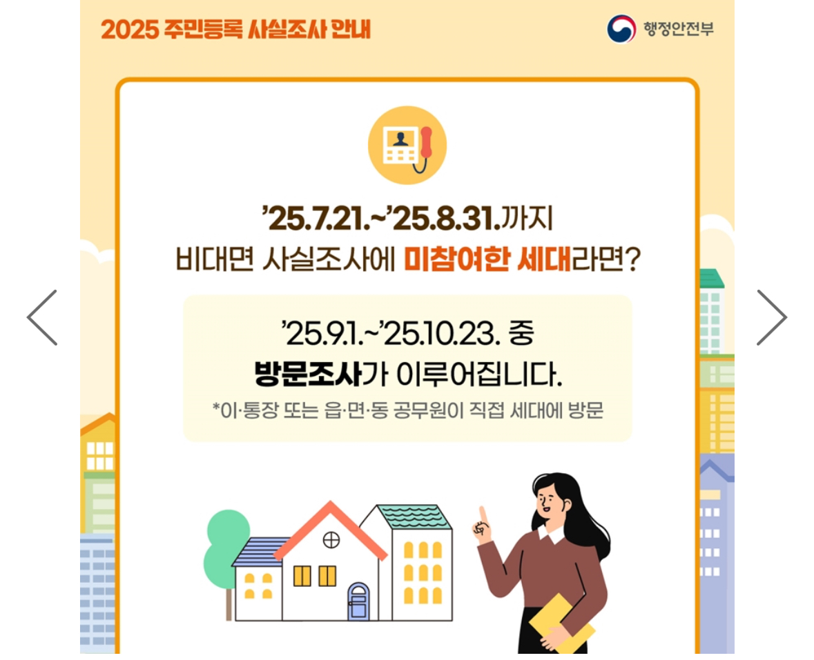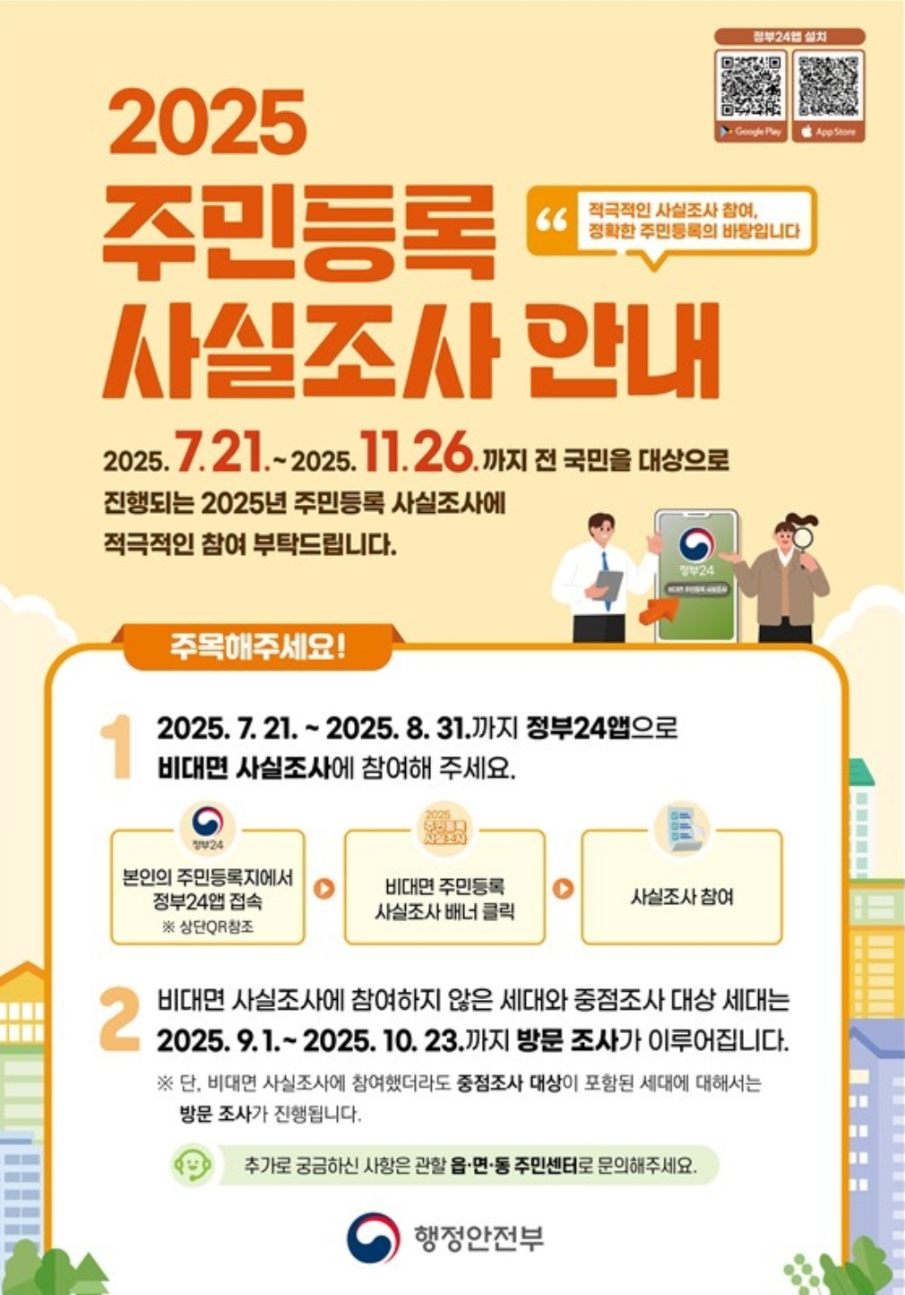 2025년 주민등록 사실조사가 7월 21일부터 전 국민을 대상으로 시작됩니다.