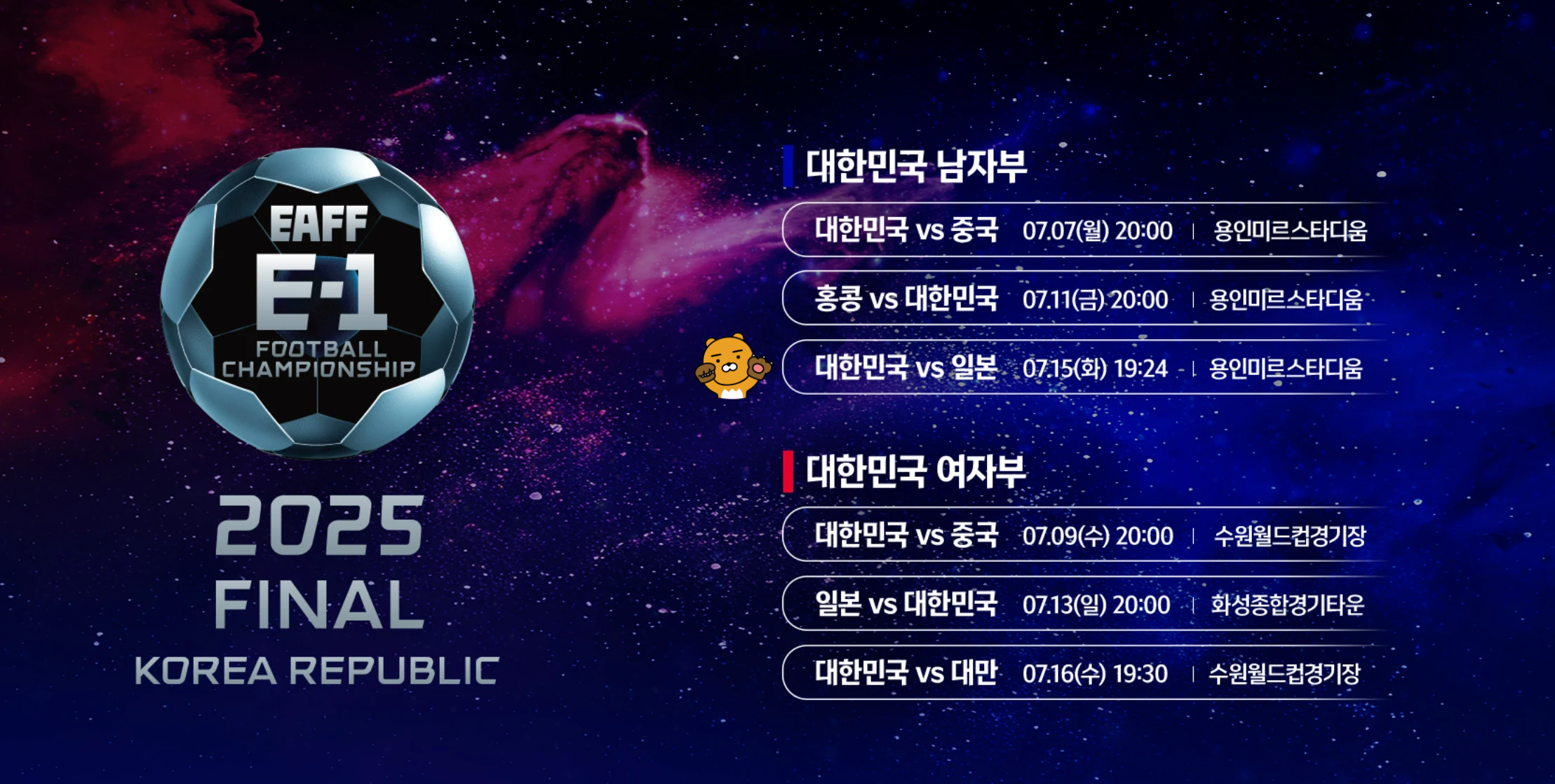 - 대회 개요: 2025년 7월 7일부터 16일까지 용인, 수원, 화성에서 개최된 6년 만의 국내 동아시안컵.