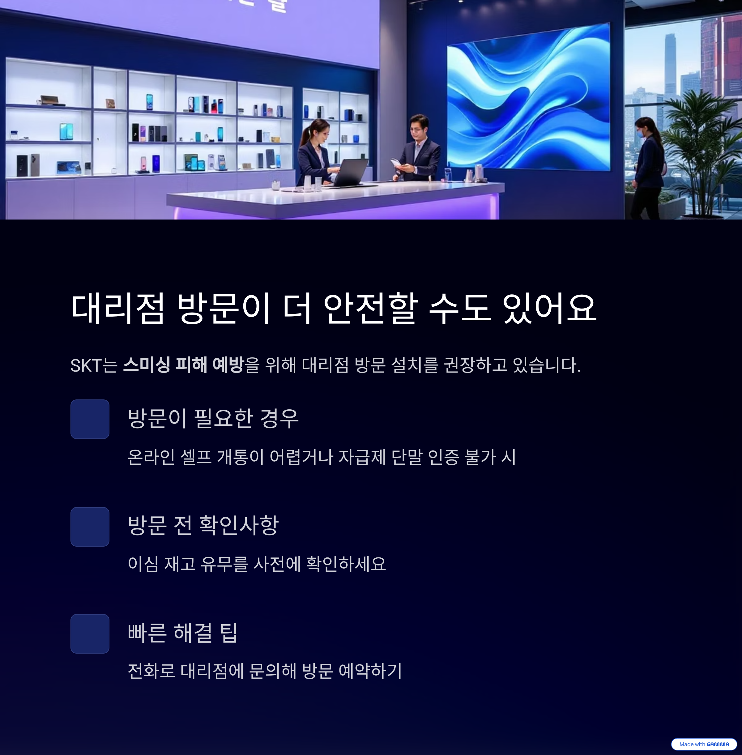 - 온라인 셀프 개통이 어렵거나 기기 등록이 안 된 경우
